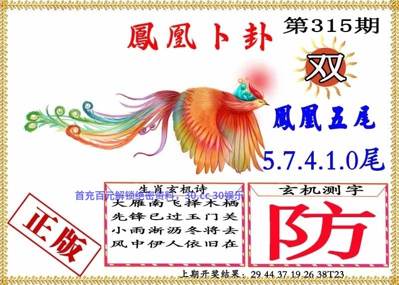 | 315期 | 1 4 5 7尾 | 开:虎04 |